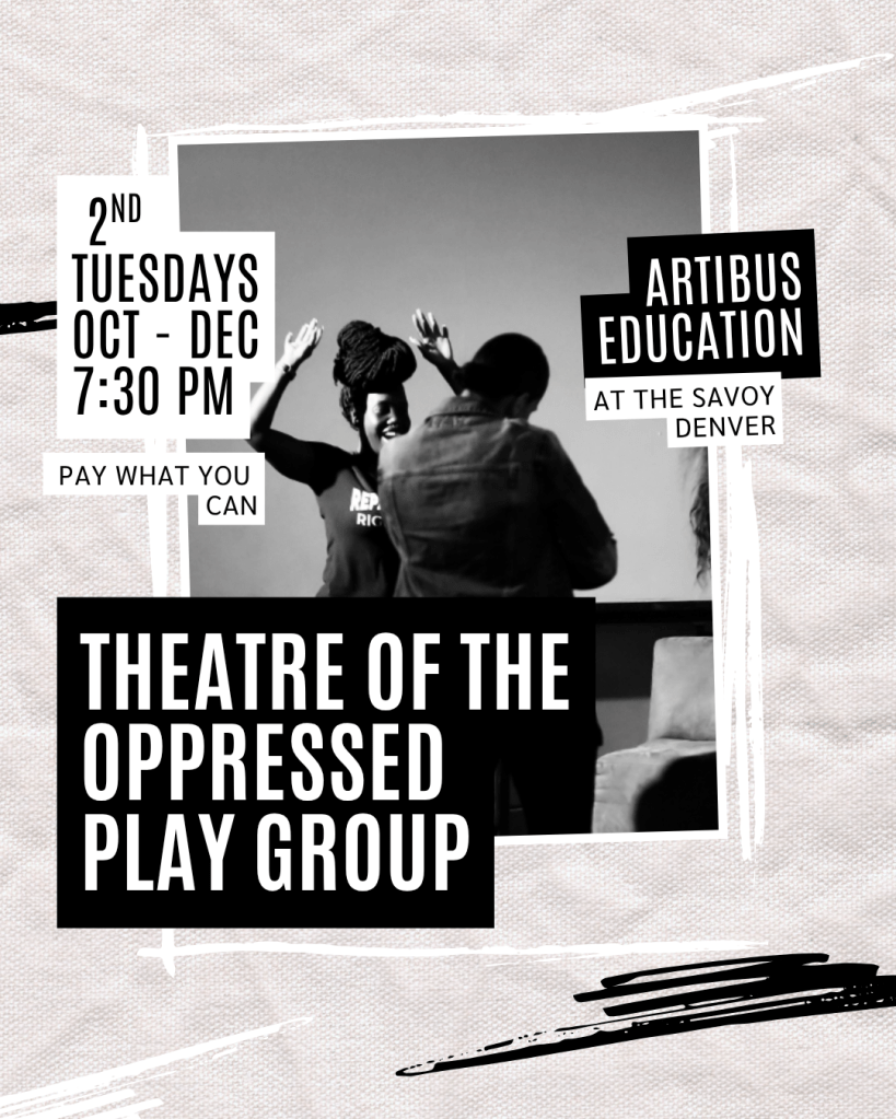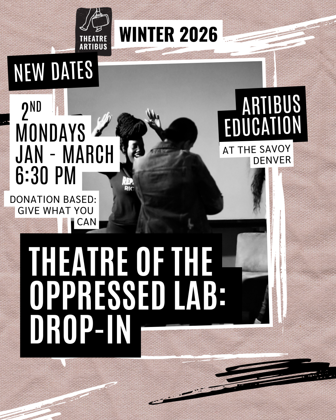 Join Rachael K Sharp in partnership with Theatre Artibus and The Savoy Denver this summer exploring a range of Theatre of the Oppressed (TO) modalities, including games, image, newspaper and forum theatre, and Rainbow of Desire. All of these forms are rooted in the practice of dialogue, storytelling and improvisation. Rachael’s approach also incorporates Somatic Abolition and applied theatre modalities, staying responsive to the people, place, and power dynamics at play.